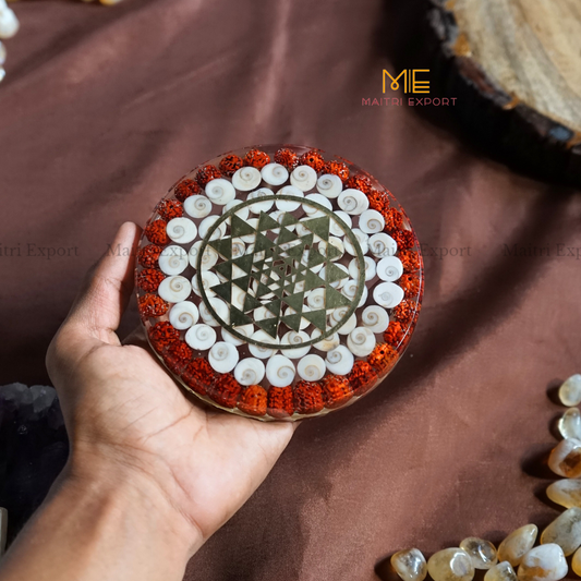 • Gomti chakra Rudraksha Orgone Coaster / plate-Maitri Export | Crystals Store