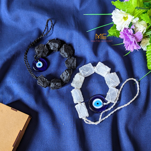 • Selenite / Tourmaline Evil Eye Hanger-Maitri Export | Crystals Store