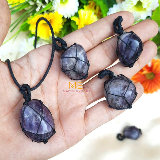 • Thread wrapped macrame Crystal tumble pendants with black thread chain-Maitri Export | Crystals Store