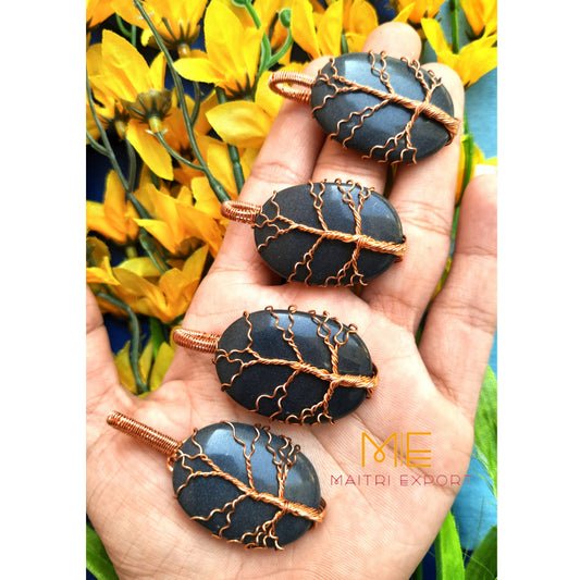 • Natural different crystal stone oval shaped pendant with copper wire tree of life design.-Maitri Export | Crystals Store