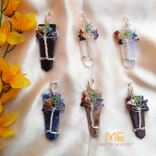 • Natural Different Crystal Stone Flat Point Pendant with 7 chakra Tree of Life wire design-Maitri Export | Crystals Store