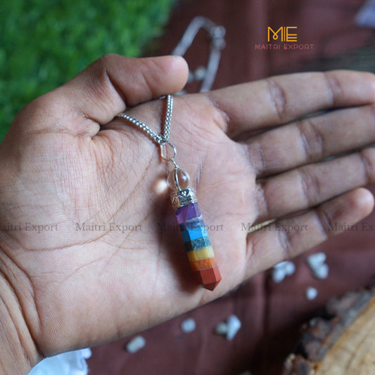 • Natural Healing Crystal Stone 7 chakra with Clear Quartz Pencil Point Pendant-Maitri Export | Crystals Store