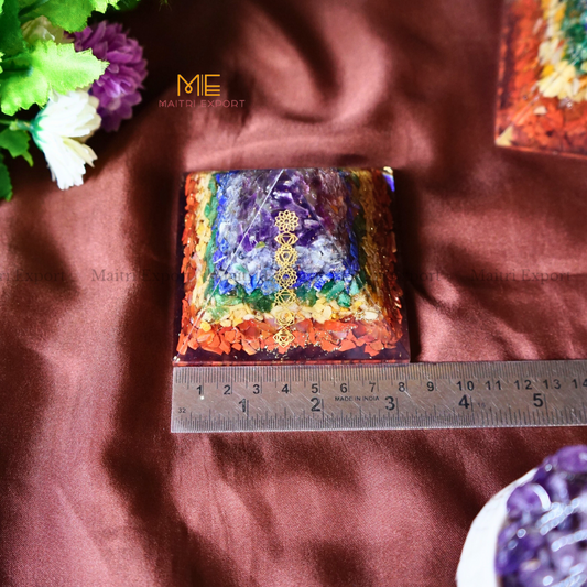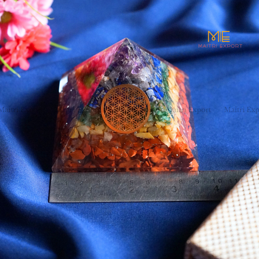 • 7 Chakra Orgone Pyramid with 7 Chakra Symbol-Maitri Export | Crystals Store
