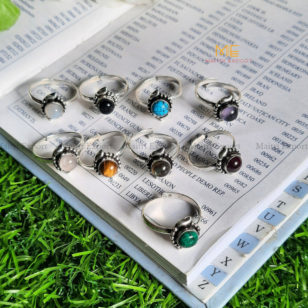 Natural Healing Crystal Gem Quality Stone Adjustable Rings
